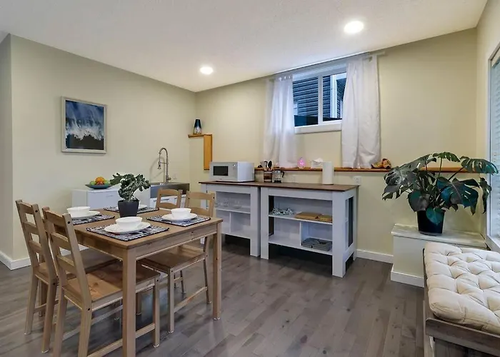 В апартаментах є мікрохвильова піч, електрочайник і скляний посуд на обладнаній кухні для приготування їжі. Це помешкання створені для того, щоб забезпечити гостям зручність та відпочинок, і укомплектовані кавоваркою. Калгарі також розташований за 45 км. Завдяки пішим прогулянкам активні гості можуть урізноманітнити своє дозвілля.
